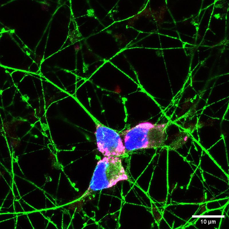 Alzheimer’s Disease and Alzheimer’s Disease Related Disorders belong to a devastating class of neurodegenerative diseases called tauopathies, marked by pathologic aggregation of hyper-phosphorylated tau protein (phospho-tau)1. An early event in the onset of tauopathies is the formation of pathologic-stress granules (p-SGs); cytotoxic biomolecular condensates (BMCs) consisting of toxic phospho-tau oligomers and RNA-binding proteins (RBPs) T-Cell Intracellular Antigen 1 (TIA1) and Splicing Factor Proline and Glutamine Rich (SFPQ) that accumulate in the cytoplasm of neural cells2–4,8. While it is evident that p-SGs play an important role in the pathogenesis of tauopathy2,3,5,75, it is unknown how they form and how they impact homeostatic functions of the proteins they sequester. Defects in axonal transport have been established as an early event accompanying phospho-tau pathology, with conformational changes in pathologic tau leading to inhibition of anterograde axonal transport through kinesin motors32–34. Since several SG associated RBPs, including SFPQ, rely on kinesins to transport mRNAs9,10, we propose that early deficits in axonal transport lead to buildup of transport RBPs in the cytoplasm, where they aggregate, contributing to formation of p-SGs. Once sequestered in p-SGs, we predict that RBP homeostatic functions are disrupted, enhancing tau-mediated neurodegeneration. To test our model, we will use innovative methods for interrupting axonal transport in WT and P301S MAPT mutant human induced cortical neurons (iCNs) and motor neurons (iMNs). We will evaluate whether disruption of particular transport programs accelerates formation of the BMCs that are the p-SGs. To determine whether sequestration of RBP SFPQ in p-SGs disrupts critical homeostatic functions in the nucleus and/or the axons of cortical and motor neurons, we will again use WT and P301S MAPT mutant human induced cortical neurons (iCNs) and motor neurons (iMNs) and interrogate the multiple essential functions of SFPQ57, including DNA repair, nuclear mRNA export, and axonal mRNA transport. Results from these studies will identify early targets for pharmacologic intervention in the pathogenesis of tauopathy and identify essential differences in the onset of disease in different cells types of the central nervous system.